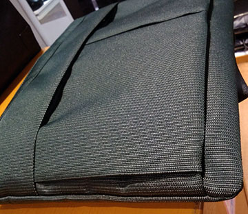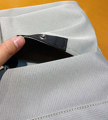 折り込まれたフロントポケットでステッチが極力でないスッキリとした美しいフォルムながらポケットの収納力は確保しています(^^)