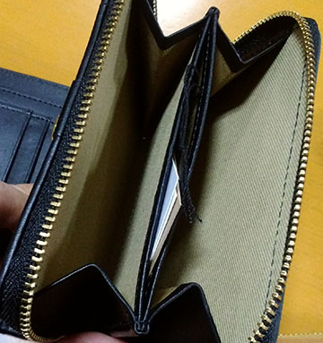 手のひらサイズでカードスリット10枚を誇り、コイン室の真ん中にレシートも収納できるのです(^ー^)