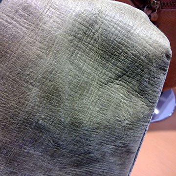 ここからがこのブランドの味つけです\(^_^ ) 一枚ずつ型押しを入れ絞りを入れる工程を経てオリジナルのユーズドヴィンテージな雰囲気に仕立てています(◎-◎;)