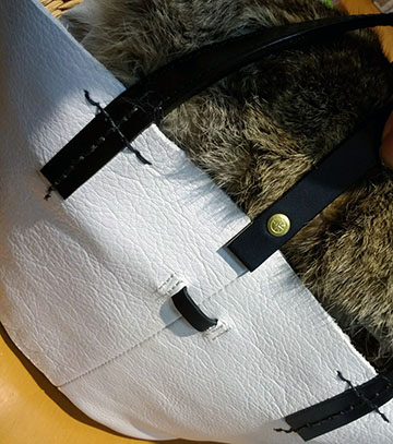レザーの外装にフィリピン工場で編まれたバンカンがフレームとなりファーが彩りを添える、今までにないバッグでこれぞイコットというバッグですよ(*ゝω・*)ノ