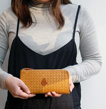 このブランドが手がける初のホースメッシュレザーなんです(^^*) 7㍉圧の馬革を手作業で丹念に編み込まれたメッシュレザーは非常に軽くしなやかで既にk’sborsaで大人気なんですよ(^ー^)