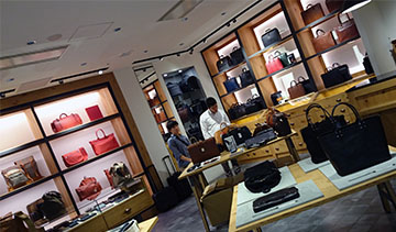 このお店は、お客様とお話してニーズに合ったバッグをバッグストックからどんどん出して提案するという手法なんです(^o^) スタッフが膨大な商品を熟知しているからこそ成り立つショップなんです! アイコンとなるべき店頭ディスプレイは色とラインを併せる事を心掛けまとまりと世界観を生み出していました(^ー^)