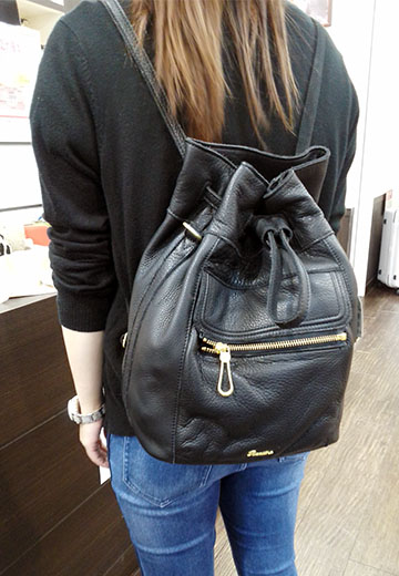 しかもリュック紐を短くして付属のショルダー紐をつけるとキレイにショルダーバッグになります(*^o^*) オススメの形は¥17800+税の巾着タイプ(^o^)