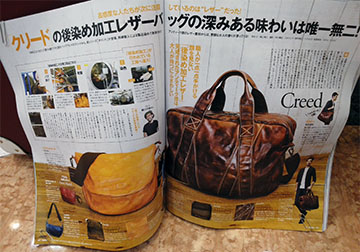 雑誌にも大きく取り上げられたこのシリーズは「後染め加工」と「バフ加工」の合わせ技で、この圧倒的な存在感を醸し出しています(^^) 専用工場で1時間あたり2~3本で、全工程2週間かかる職人の手作業で作られます(^ー^)