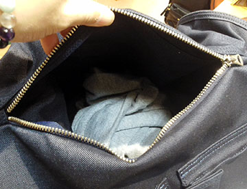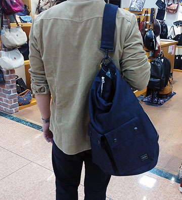 色んなバッグのジャンルがありますが、今日は珍しいジャンルを紹介したいと思います(ゝω・) こちらポーターの人気シリーズ「スモーキーシリーズ」ボンサックのネイビー色¥22000+税です(^o^)