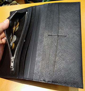 ベタ張りという非常に難しい技法により成り立つこの極薄財布の真骨頂は¥27500+税の長財布です(*^^)