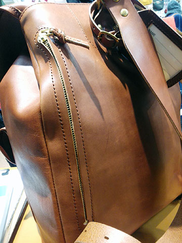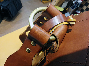シリーズで紹介している工房財布の別注レザーを使った雰囲気抜群のリュックです(^^) プレス機にかけたレザーは重厚な雰囲気で想像以上の軽量さ(^ー^) 自慢の本真鍮も贅沢に大きく使われているのも、カバンのアンティーク感を盛り上げますね~☆彡